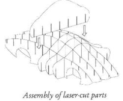 space between the slices. Slots allow the cross sections to interlock in an open cell framework, like an egg